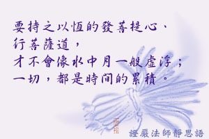 要持之以恆的發菩提心,行菩薩道,才不會像水中月一般虛浮;一切,都是時間的累積。