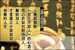 人應該摒除「自己不如人」的心念,用心於如何對待別人、幫助別人,才是真正少欲知足快樂的人生。