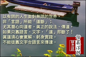 以有限的人生面對無限的世界,非「言語」所能「道斷」;尤其潛心向道者,真正的說法、傳道,如果只靠語言、文字,「道」即斷了!真道須心會意解、躬身實踐,不能徒靠文字台語言來傳達。