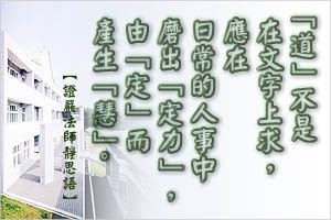 「道」不是在文字上求,應在日常的人事中磨出「定力」,由「定」而產生「慧」。