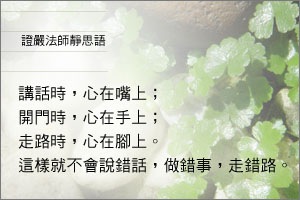 講話時,心在嘴上;開門時,心在手上;走路時,心在腳上;這樣就不會說錯話,做錯事,走錯路。